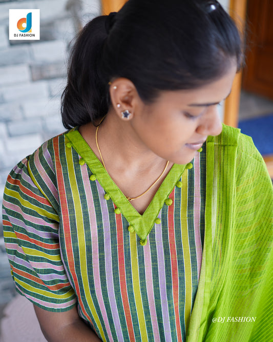 cotton 3 piece kurthi set with duppata - Green striped Design