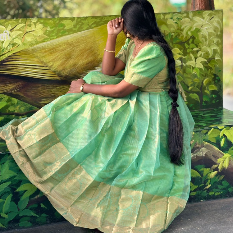 Narayanapet Cotton Gown with Dupatta Thead zari