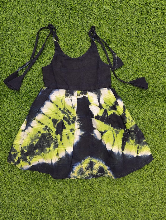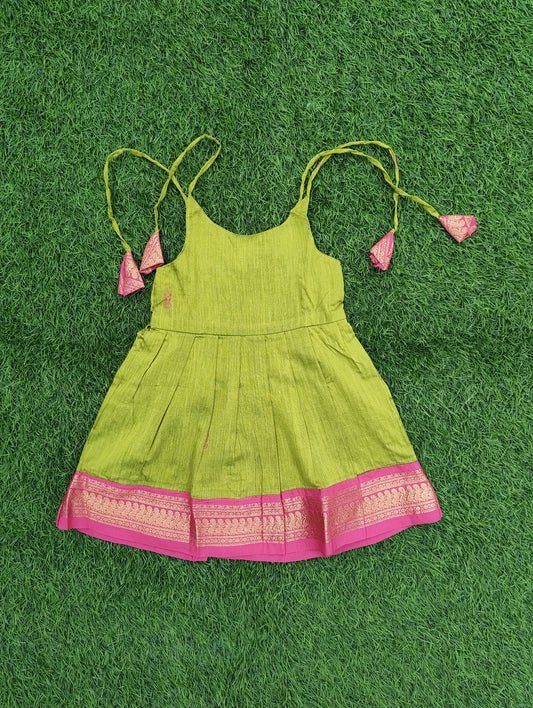 Kalyani Cotton Infants Tie-Up Strap Dress – Parrot Green & Pink Combo