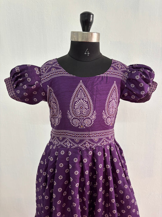 Kalyani Cotton Kids Full-Length Maxi | Contrast Cross Pattern Yoke with Golden Zari Border -