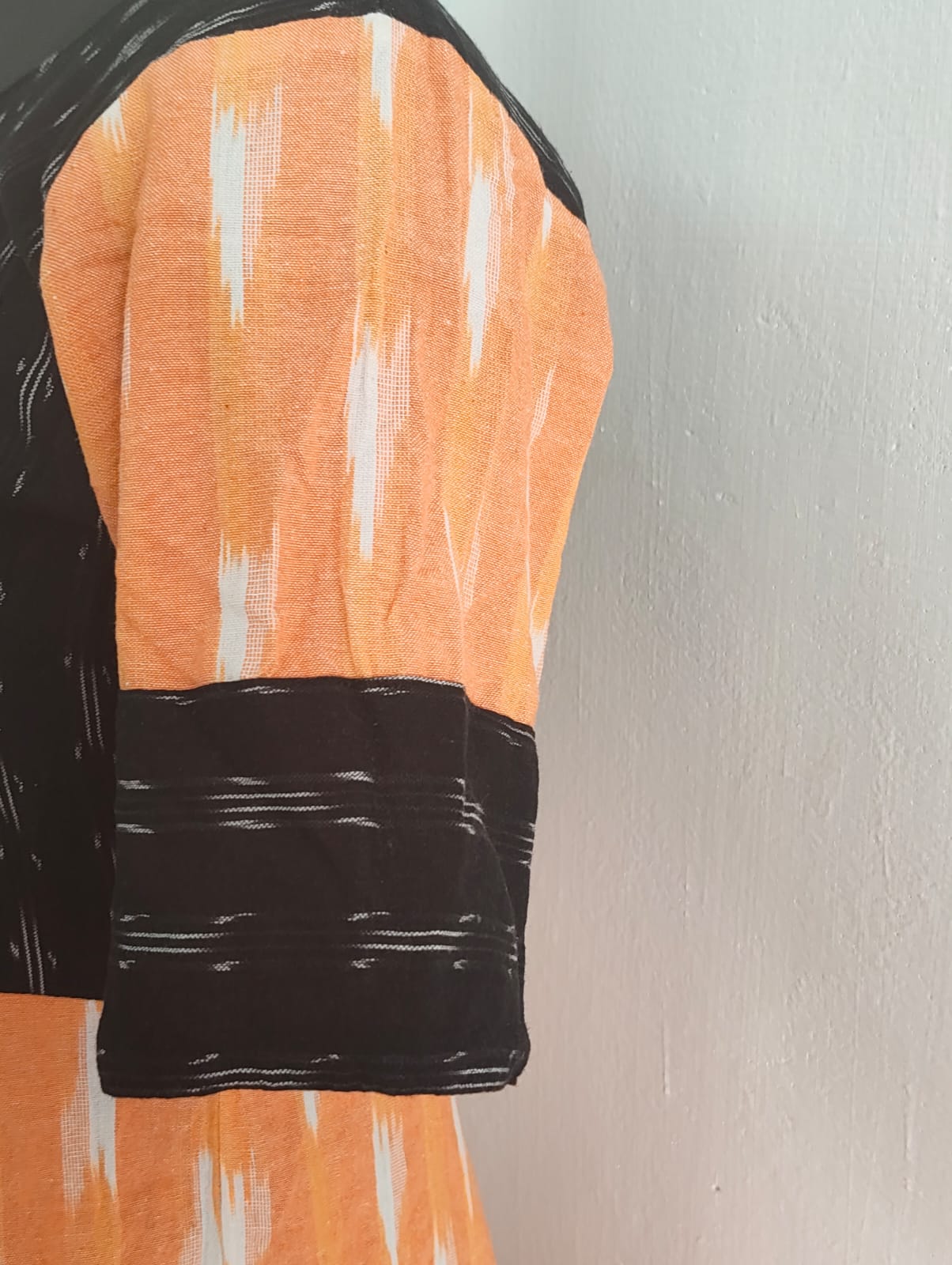 Celebrate timeless Indian style with this beautiful Ikkat full frock crafted in rich traditional patterns. The dress flows gracefully with a wide, flattering flare that highlights the beauty of classic handloom-inspired design. Perfect for festive wear, temple visits, family gatherings and traditional outings, this frock brings comfort, culture and elegance together in one stunning look.